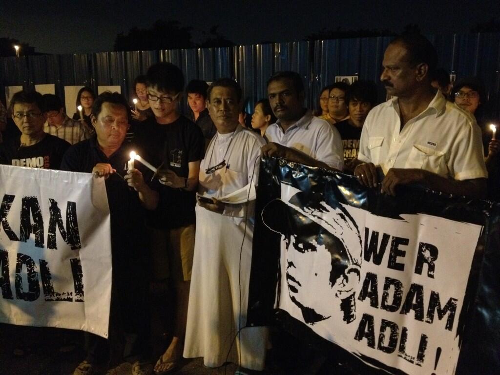 Adam Adli’s father and fellow Malaysians hold a vigil for the young student activist – Photograph: Fadiah Nadwa